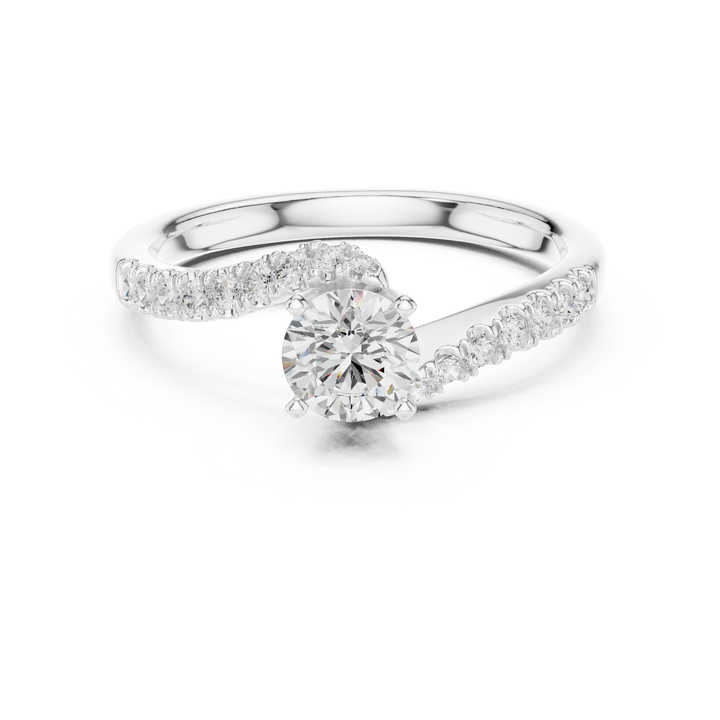 Bague de fiançailles en or blanc 14 carats avec diamant rond cultivé en laboratoire pour femmes | Nouveau diamant cultivé