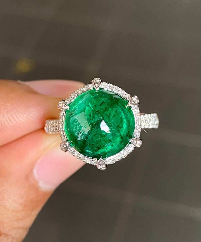 Keyword:14K White Gold Zambian Emerald Ring Real Gemstone Jewelry Fine Ring