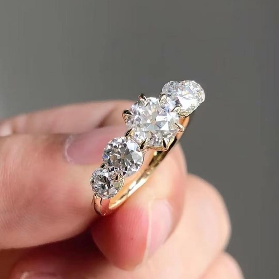 Nom:Bagues de mariage rondes en or 14 carats OEC Moissanite, bijoux pour femmes