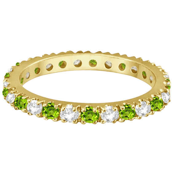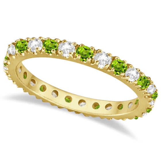 Bague Éternité en Or Jaune 14K avec Diamants et Péridot, Alliance Romantique, Pierre Ovale de 0,64 ct, Sertissage Plaqué Rhodium pour les Promesses