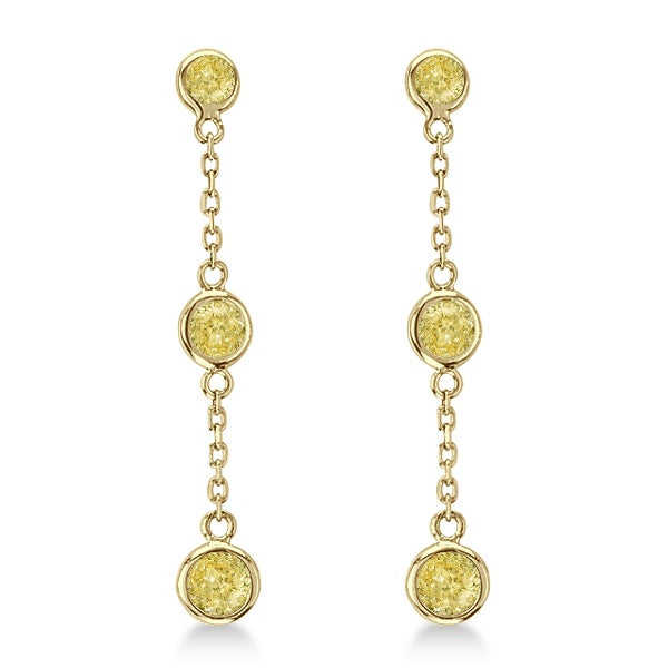 Boucles d'oreilles pendantes en or jaune 14 carats avec diamant jaune fantaisie 0,25 ct