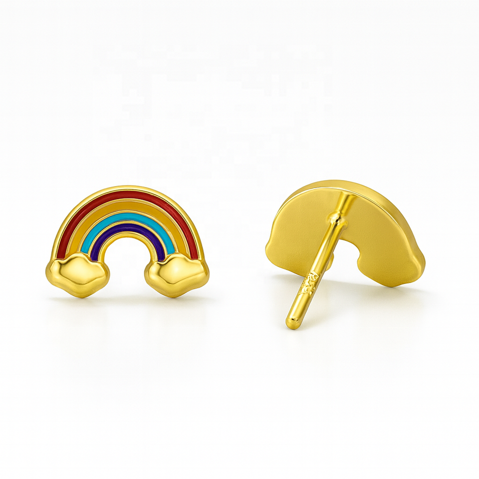 14K Yellow Gold Fine Jewelry Rainbow Enamel Stud Earrings for Girls and Kids Fashionable Perfect Gift Idea