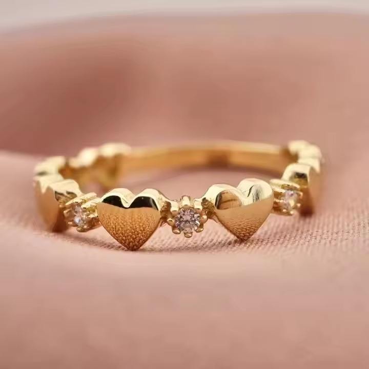 Bague coeur en or jaune 14K Bague de fiançailles en diamant de laboratoire Bijoux de Saint Valentin Cadeau pour elle Bague empilable coeur d'amour