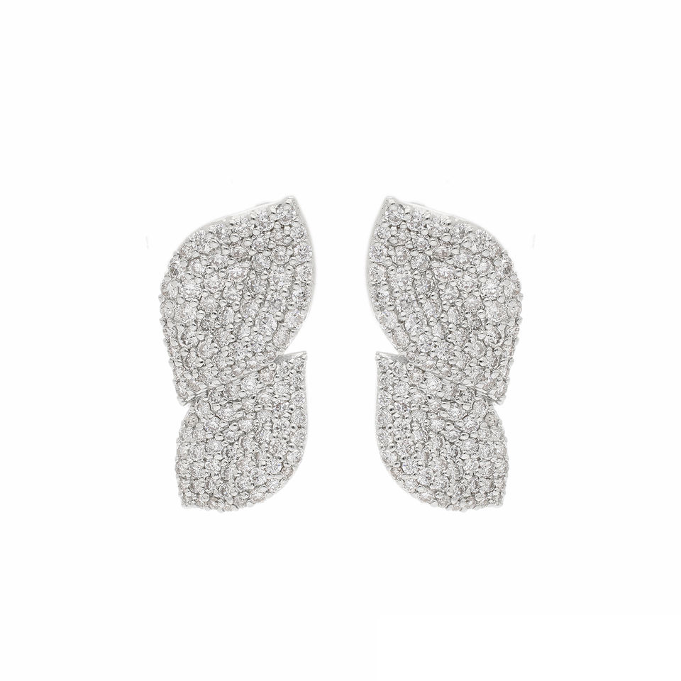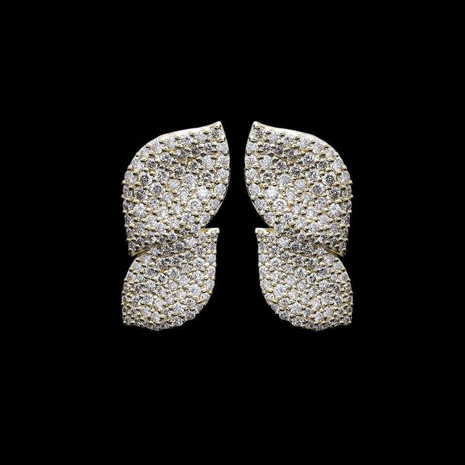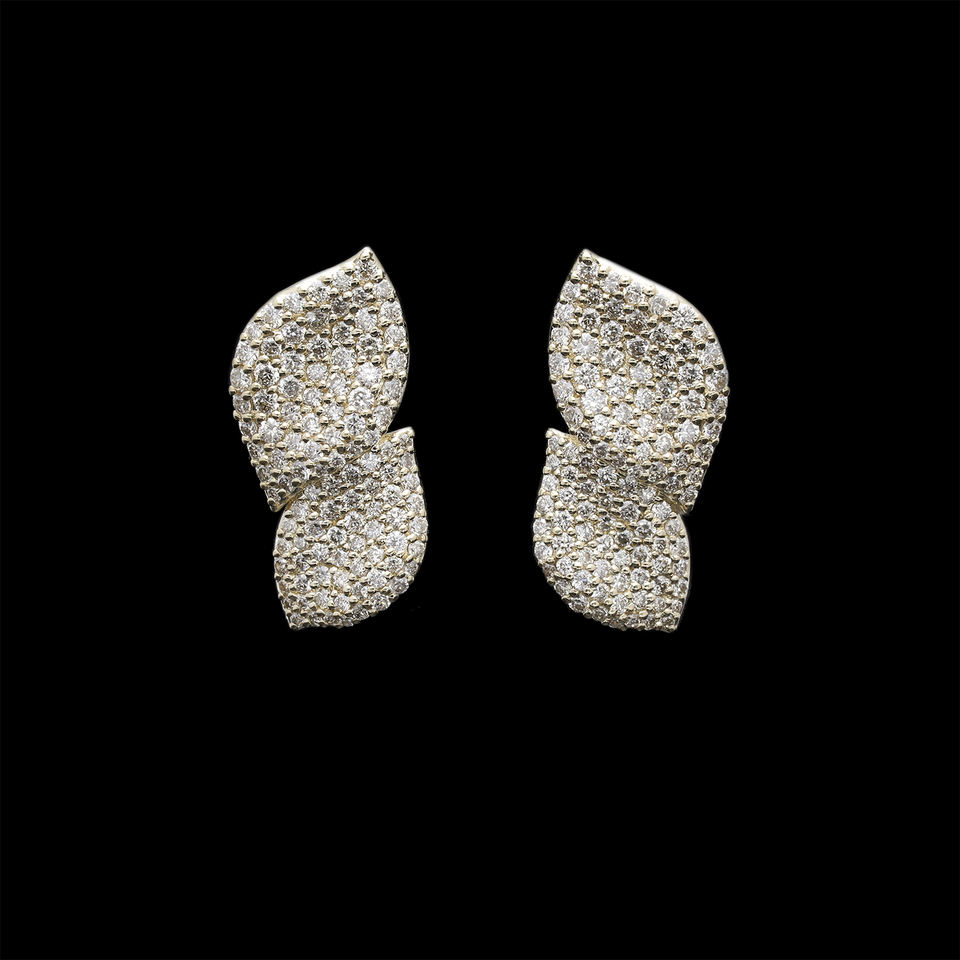 Boucles d'oreilles en or jaune 14 carats avec diamants naturels dans un sertissage de pavé Bijoux de luxe élégants inspirés de la nature