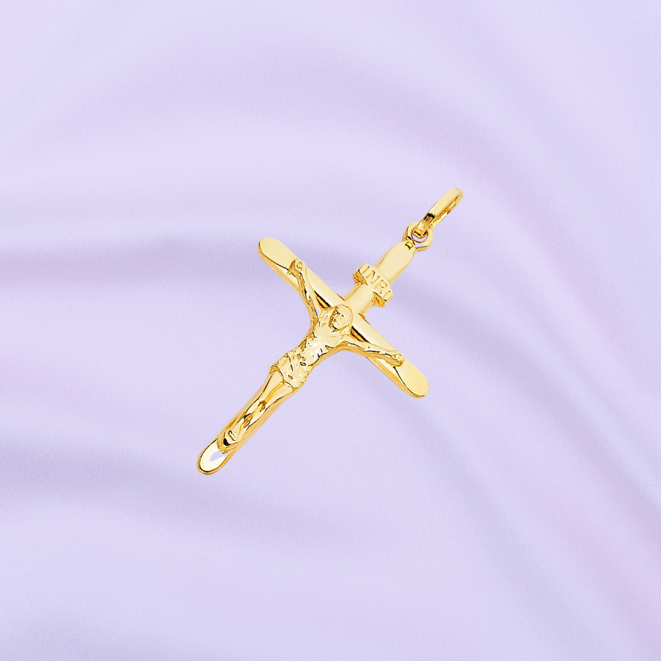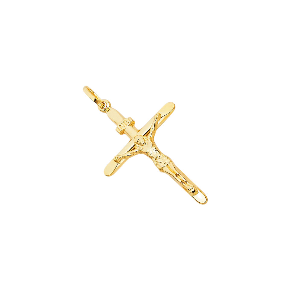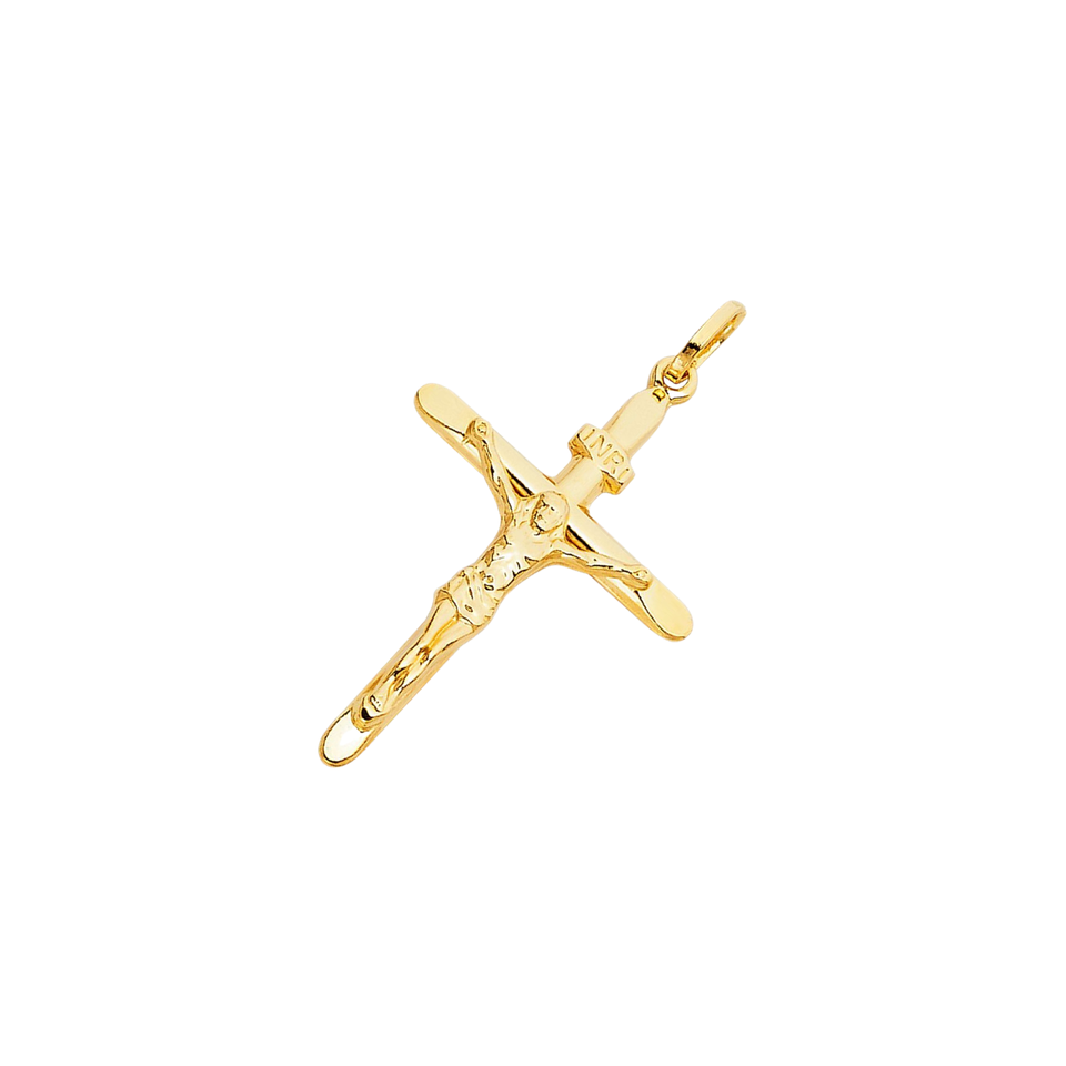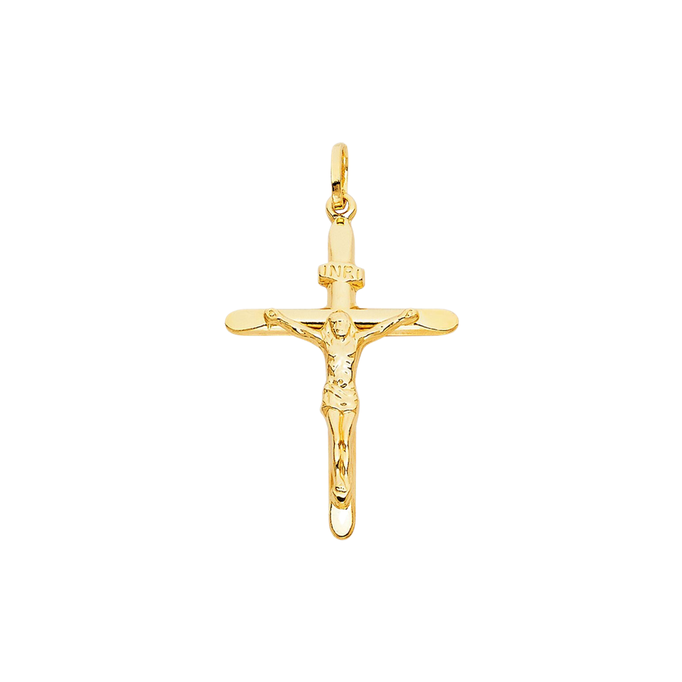 Pendentif élégant en plaqué or jaune 14K fantaisie catholique Jésus Christ sur INRI Trendy Cross Crucifix