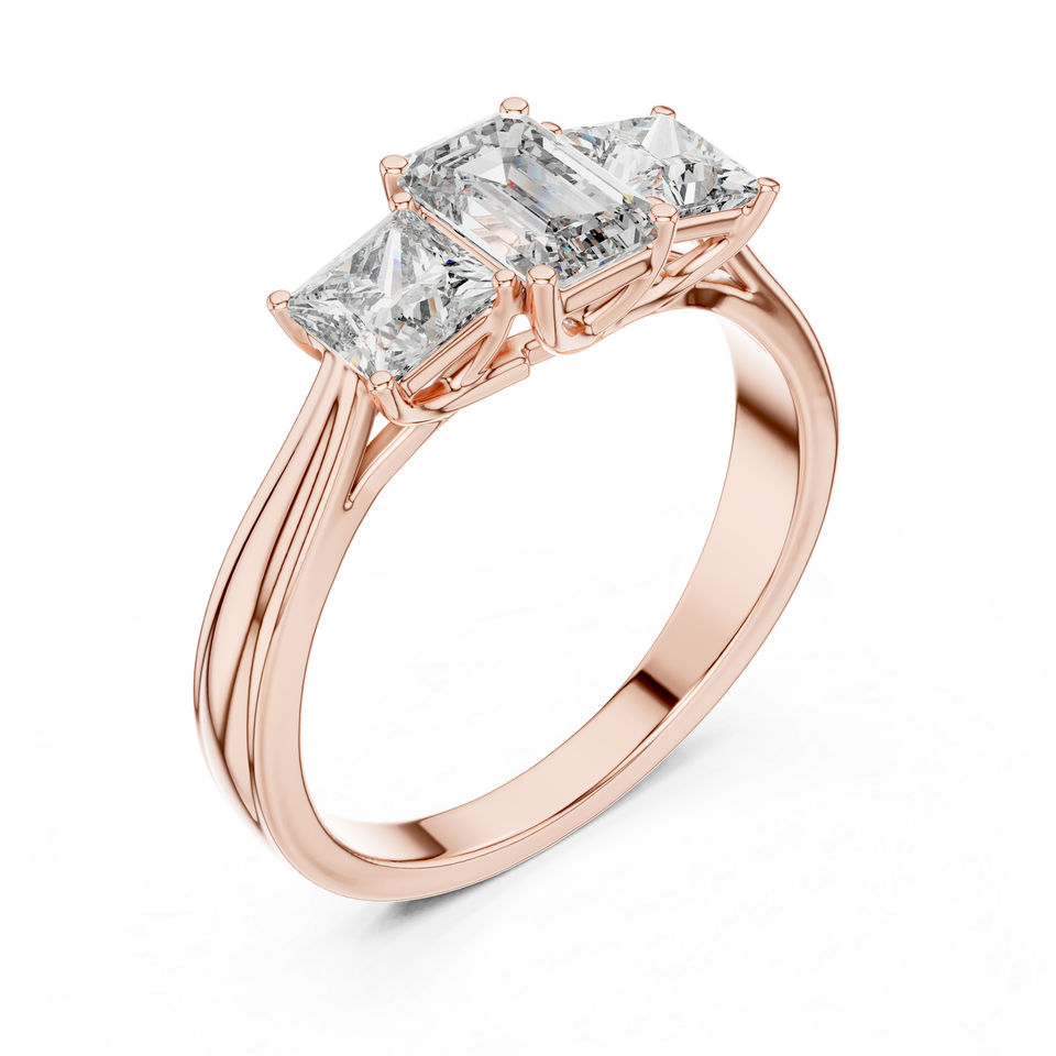 Or jaune 14 carats, princesse et émeraude, diamant de laboratoire | Bague de fiançailles | Nouveau diamant cultivé
