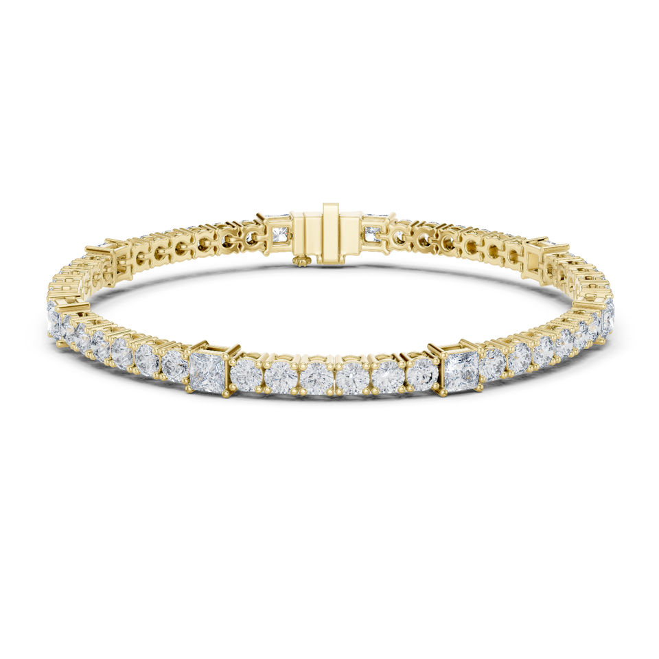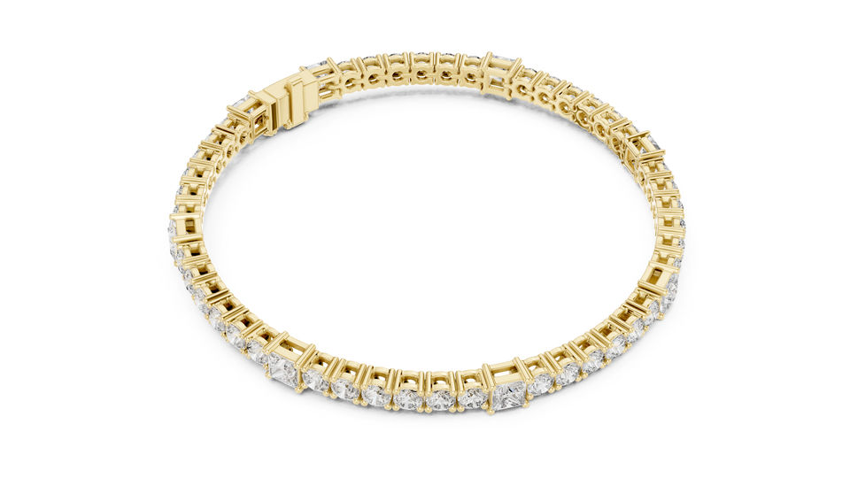 Bracelet de fiançailles en or jaune 14 carats plaqué or avec diamant de laboratoire rond/princesse pour femme | Nouveau diamant cultivé