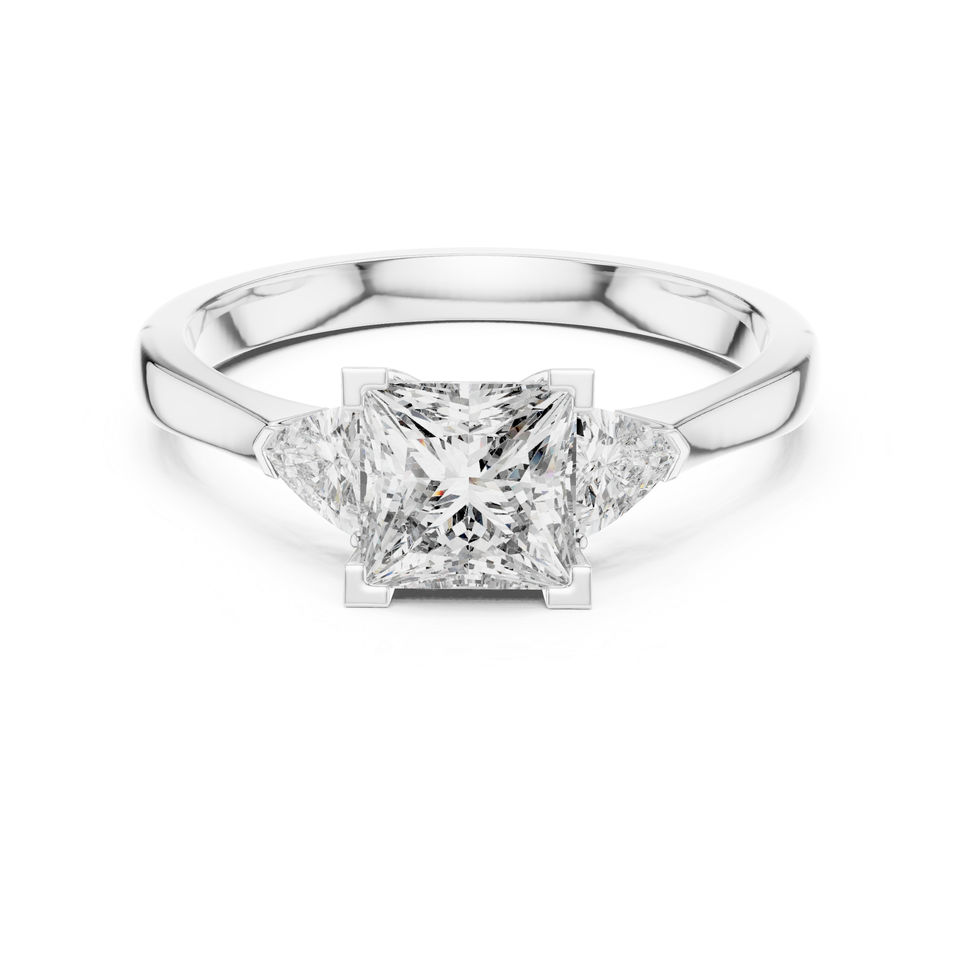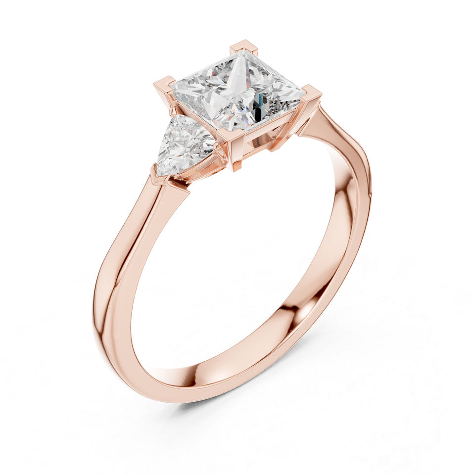 Bague en or jaune 14 carats avec diamant de laboratoire taille princesse et taille trilliant pour femme | Vêtements de tous les jours | Nouveau diamant cultivé
