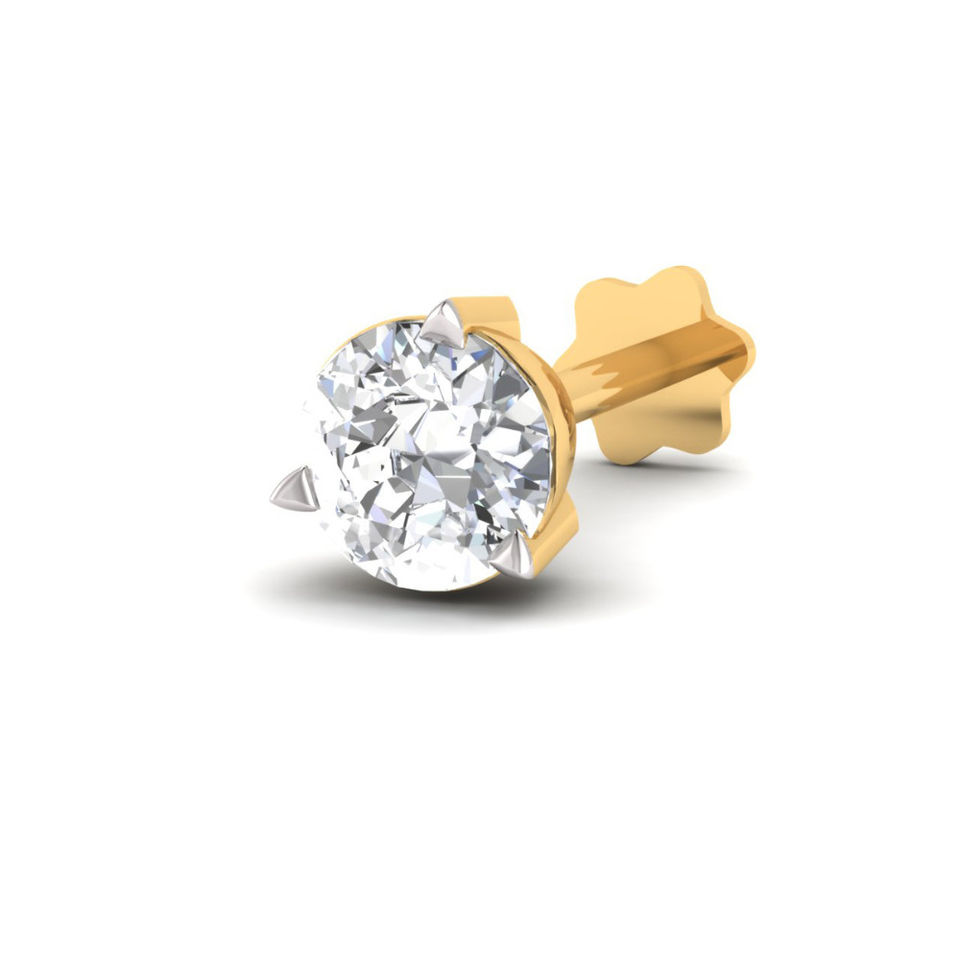 Goujon de nez en or jaune 14 carats avec diamant solitaire rond véritable