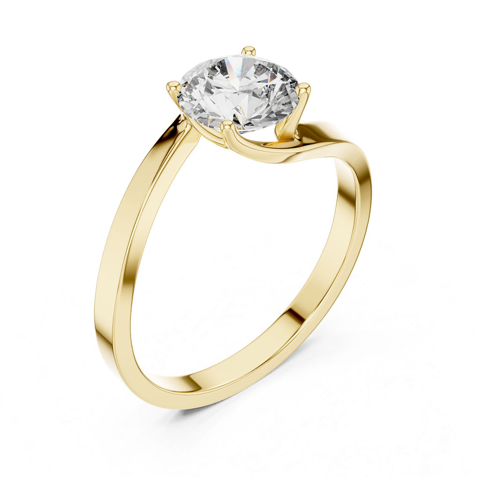 Bague solitaire en or jaune 14 carats avec diamant rond de laboratoire | Bague à porter tous les jours | Nouveau diamant cultivé