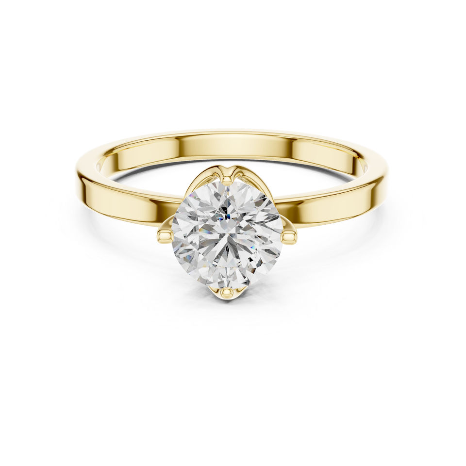 Bague solitaire en or jaune 14 carats avec diamant rond cultivé en laboratoire | Bague en diamant de 1 carat, certifiée IGI, de luxe, pour un usage quotidien
