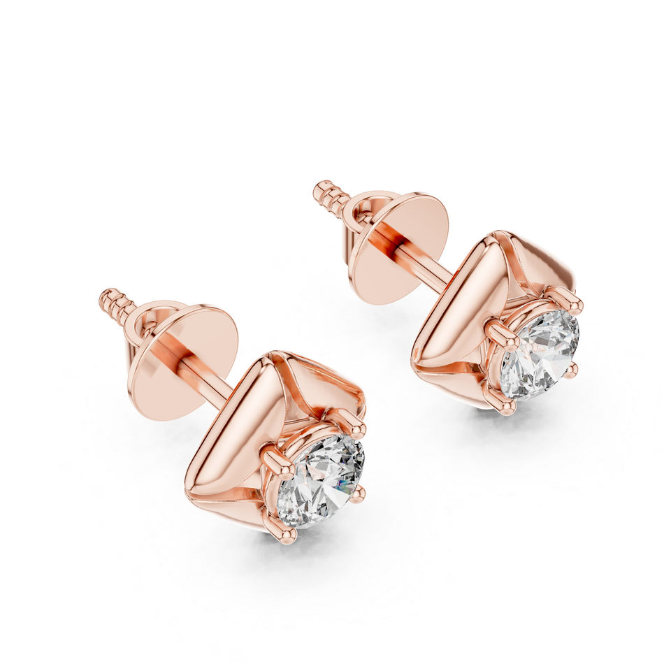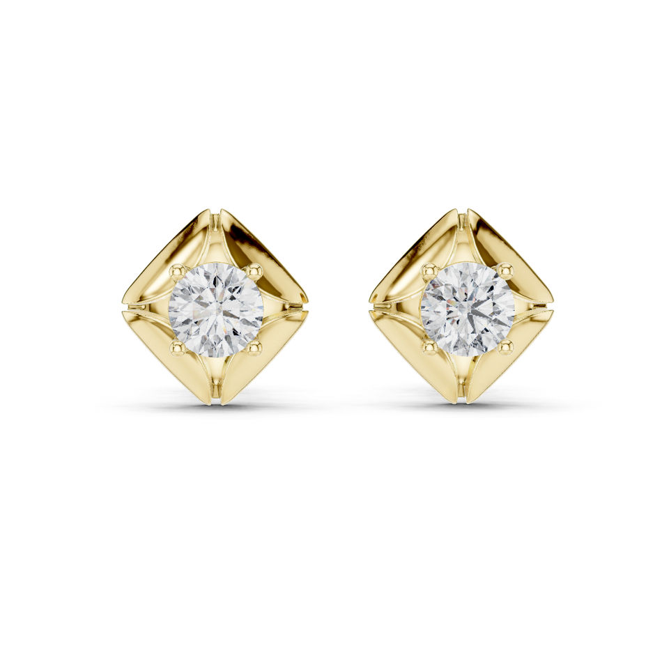 Boucles d'oreilles en or jaune 14 carats avec diamants ronds de laboratoire | Boucles d'oreilles pour tous les jours | Nouveau diamant cultivé