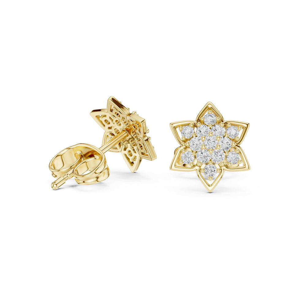 Boucles d'oreilles de fiançailles vintage en or jaune 14 carats avec diamant rond de 0,24 carat cultivé en laboratoire pour femmes | Diamant cultivé certifié IGI