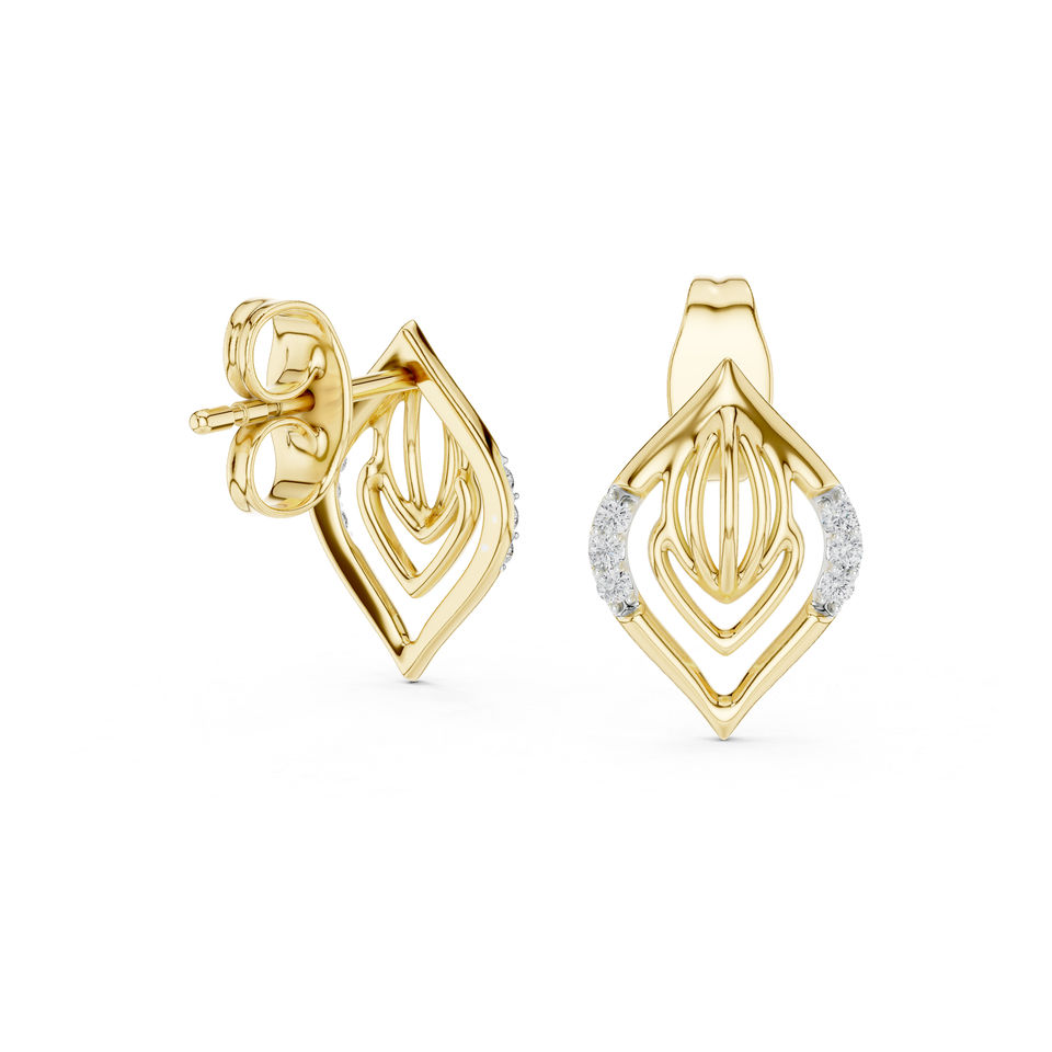 Boucles d'oreilles en or jaune 14 carats avec diamants de laboratoire ronds pour femmes | Vêtements de fiançailles | Nouveau diamant cultivé