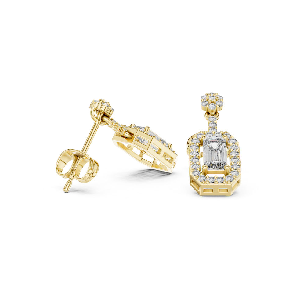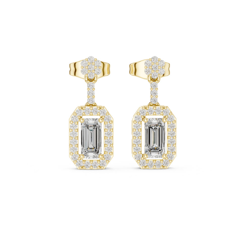 Boucles d'oreilles de fiançailles en or jaune 14 carats avec diamants de laboratoire ronds et ovales pour femmes | Nouveau diamant cultivé