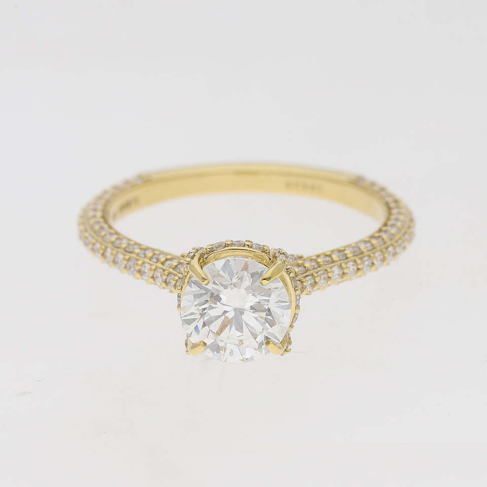 Bague de fiançailles solitaire en or jaune 14 carats avec diamant naturel avec double rangée de diamants pavés serti classique à quatre broches