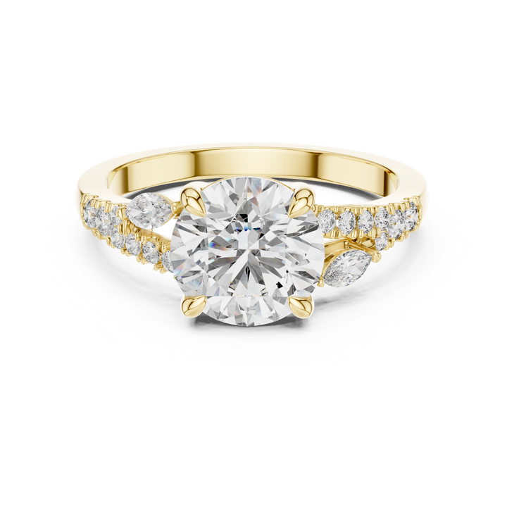 Bague de fiançailles en or jaune/blanc/rose 14 carats avec diamant rond brillant de taille brillant cultivé en laboratoire pour femmes, bague de mariage élégante et tendance