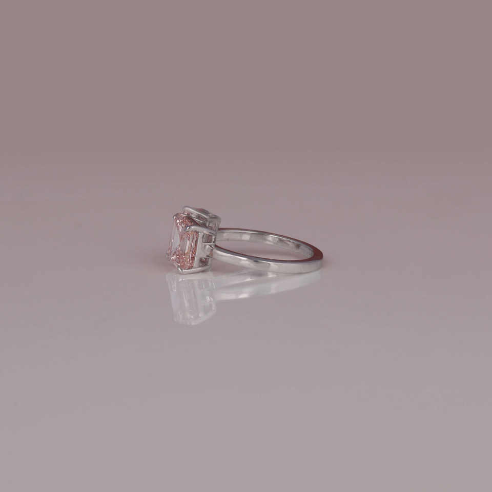 Bague de fiançailles en or massif 14KT avec Asscher et Emerald Cut Design personnalisé Lab Grown Pink Diamond Gold Plated and Certified