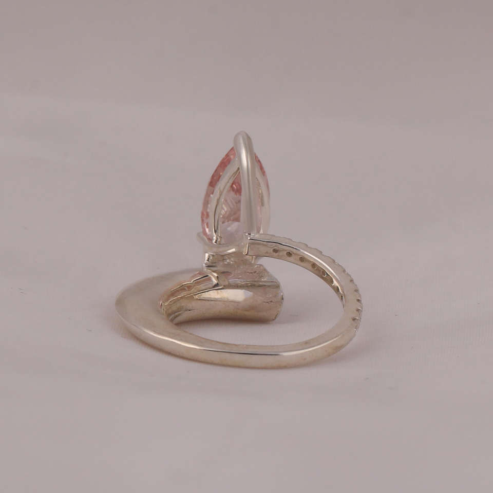 Bague de fiançailles en or massif 14KT avec sertissage de lunette certifié IGI en diamant de laboratoire taillé en poire rose de style tendance