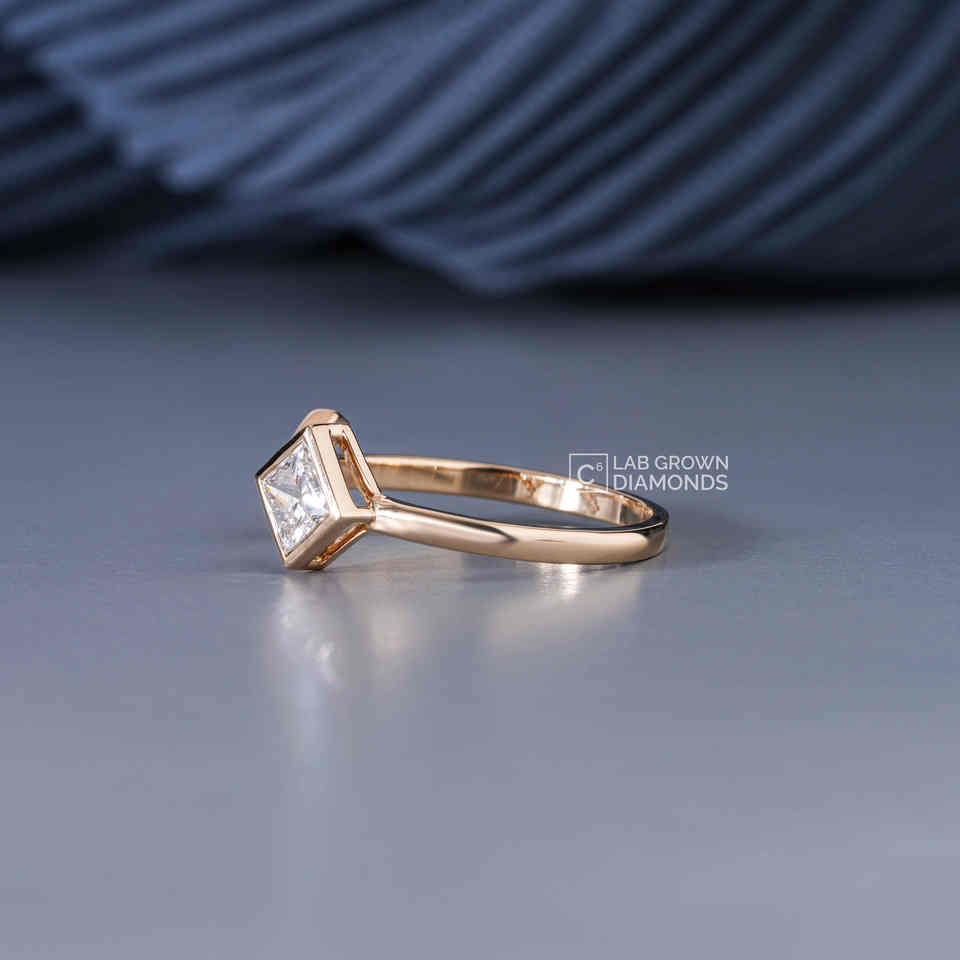 Bague solitaire en or jaune 14 carats avec diamant de laboratoire taille princesse, certifiée luxe, cadeau d'anniversaire ou de mariage pour femme, 0,43 ct total
