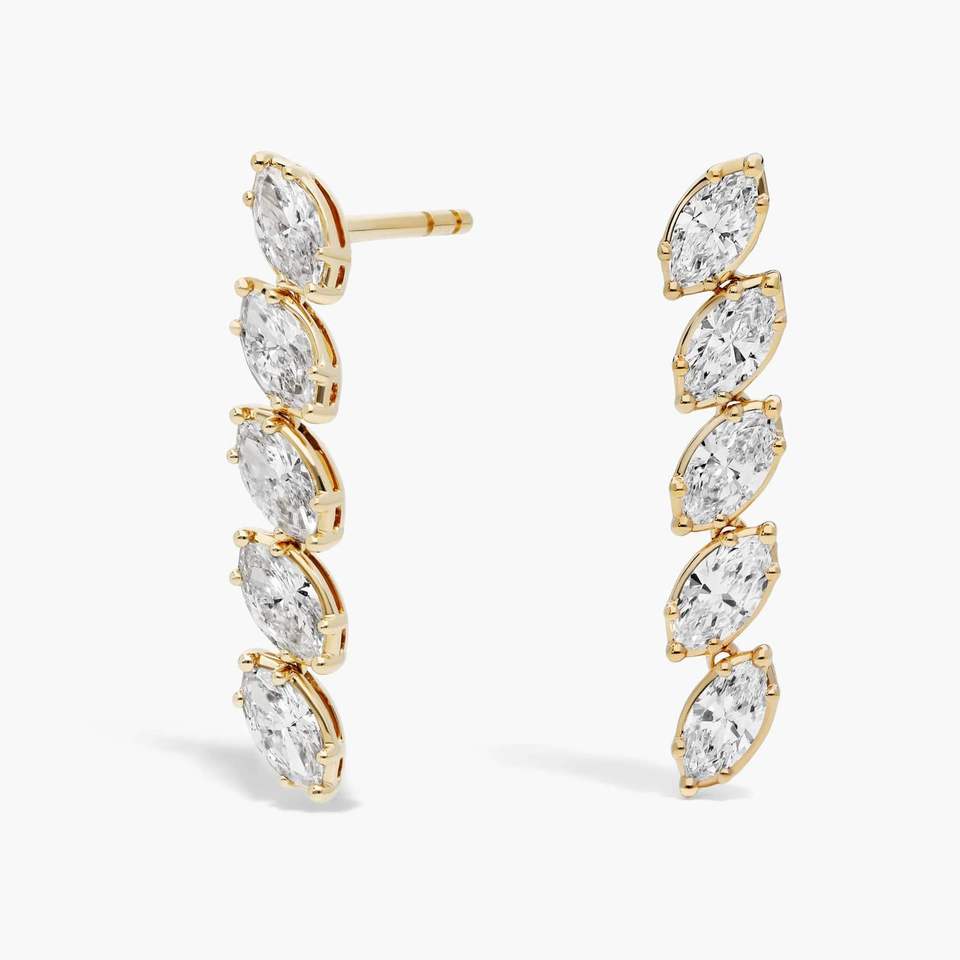Boucles d'oreilles pendantes en or jaune/rose/blanc 14 carats avec diamants marquise cultivés en laboratoire, 1,70 carat au total, sertissage vertical à griffes, plaqué rhodium, luxe et raffinement