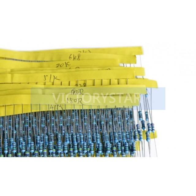 Experimental resistor pack 14W metal film resistor pack 1 precision 30 commonly used resistance values each with 20 pieces If high requirements are needed please specify in advance The specific specifications are as follows 10 22 47 100 150 200 220 270 330 470 510 680 1K 2K 22K 33K 47K 51K 68K 10K 20K 47K 51K 68K 100K 220K 300K 470K 680K 1M five color ring with an accuracy of 1 Each 20 pieces is one resistor Each row is labeled with resistance values making it easier for Taobao users to identify and select packages weighing around 78 grams each
