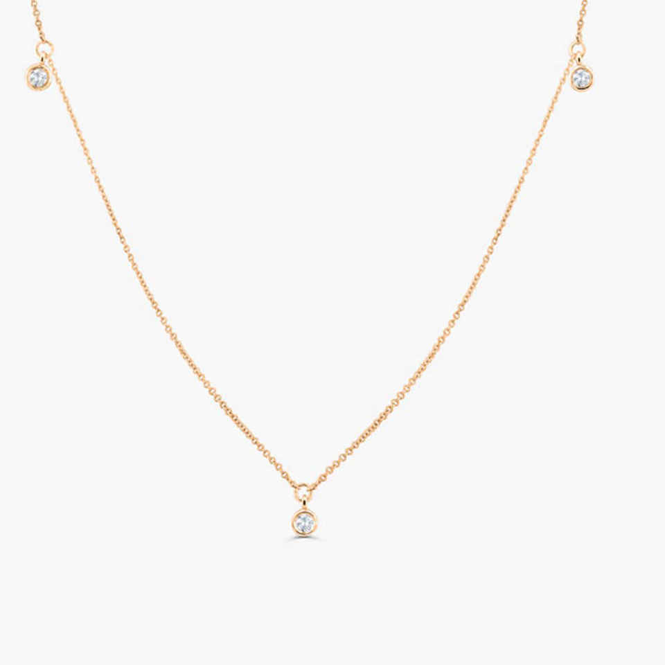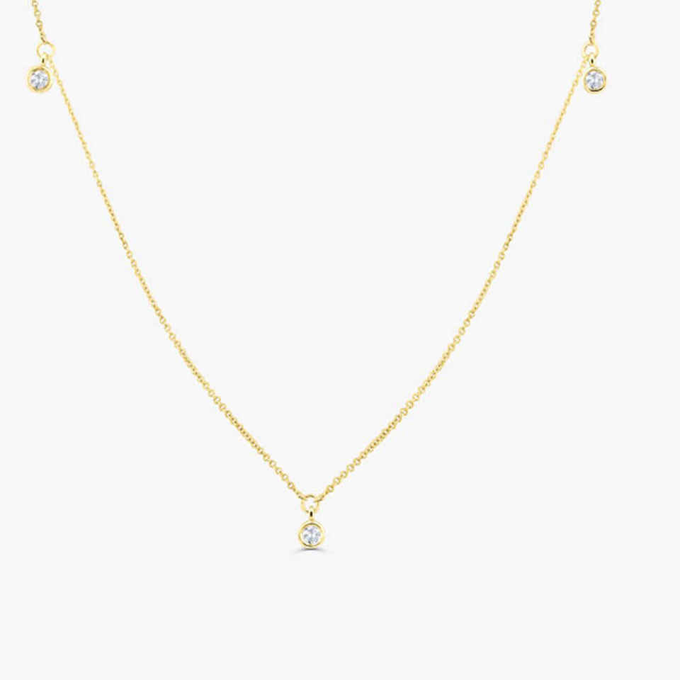 Collier en or 14 carats avec diamant naturel serti clos, 0,17 ct taille brillant, sur chaîne à maillons, fait sur mesure pour mariage, 2 grammes, troisième pièce
