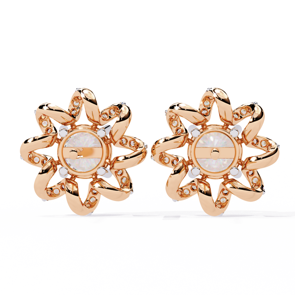 Boucles d'oreilles personnalisées au design de luxe en or 14k cultivées en laboratoire avec combinaison ronde et brillante certifiée IGI