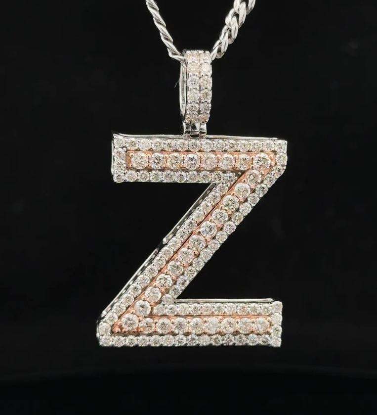 14k Or Diamant 'Z' Initial Pendentif Personnalisé Nom Charme Collier Classique Hiphop Style Anniversaire Mode Cadeau Alliage Matériel