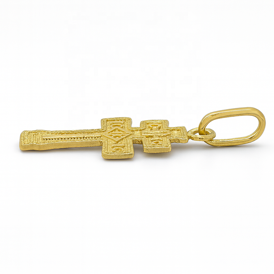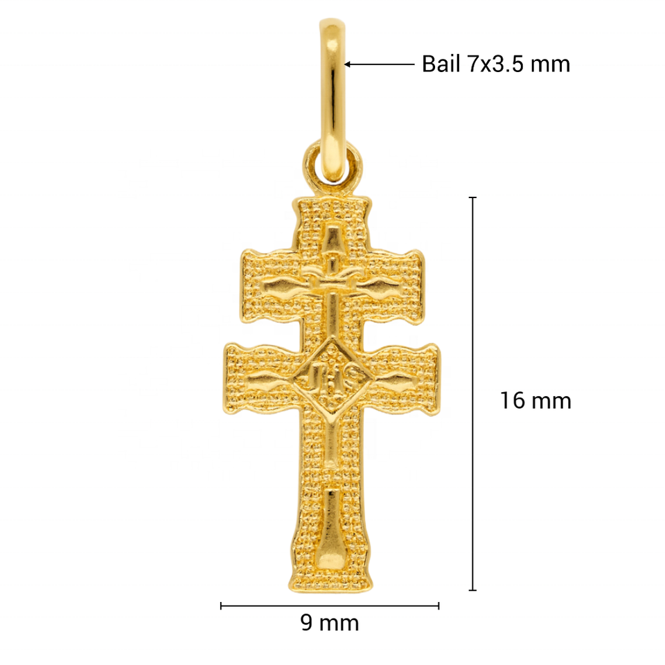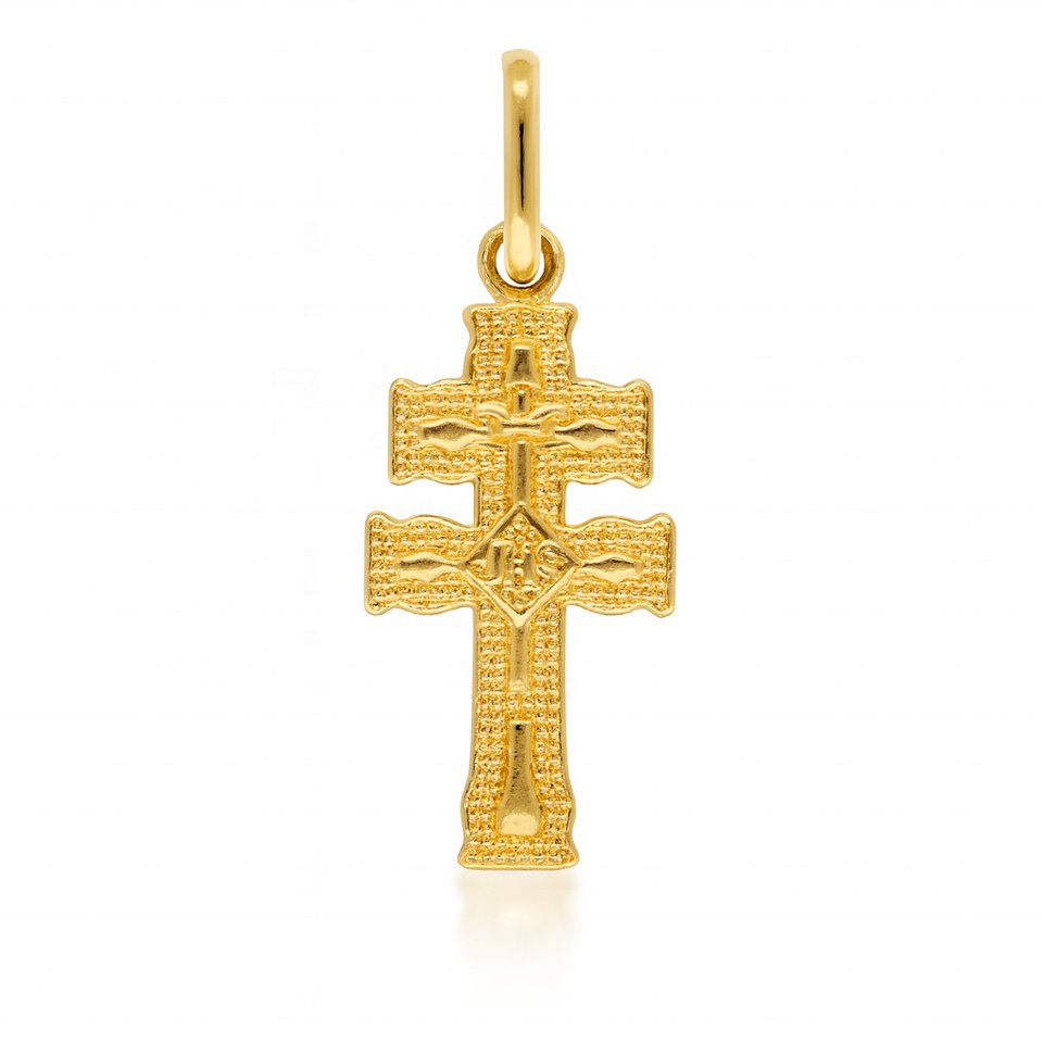 Pendentif Croix à Double Barre en Or 14 carats, Détail Texturé Fin, Design Religieux Orthodoxe Compact, pour Usage Quotidien et Offrir en Cadeau