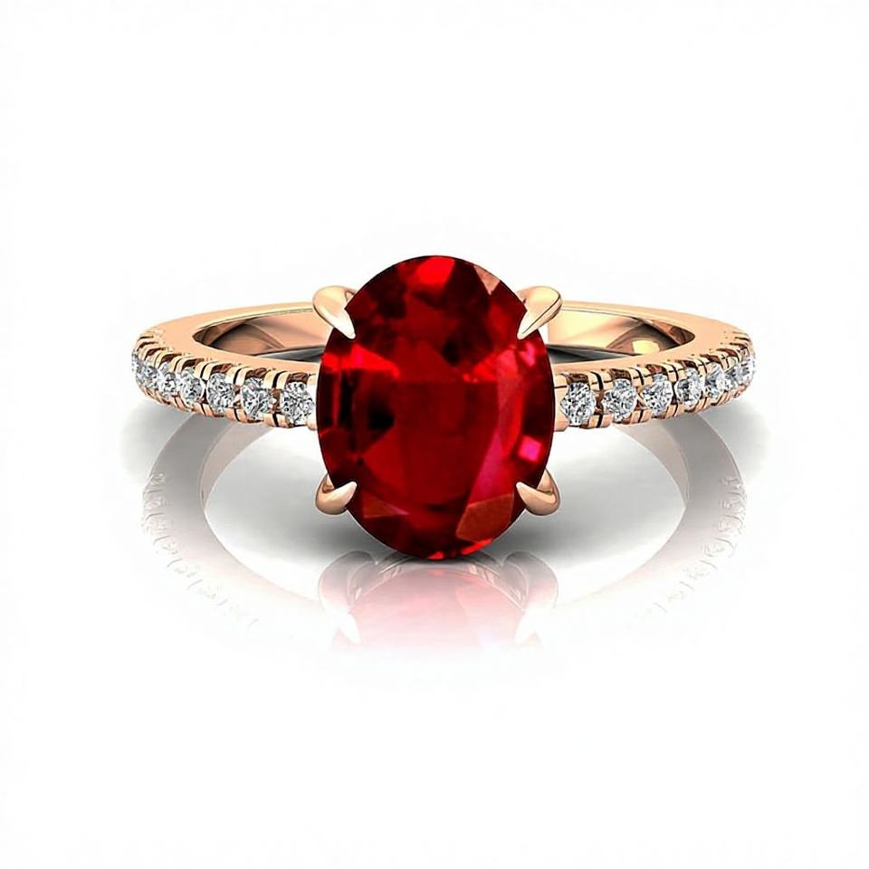 Bague solitaire en or 14 carats avec rubis ovale de laboratoire et diamants naturels, haute qualité, pour mariage et fiançailles, OEM ODM