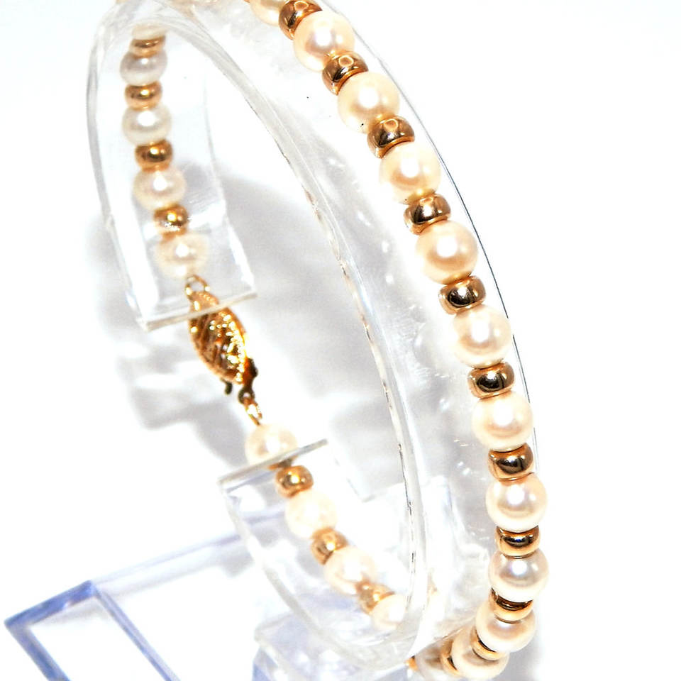 14k Gold & Pearl Bracelet Elegant Pearl Bangle with 14k Gold Accents