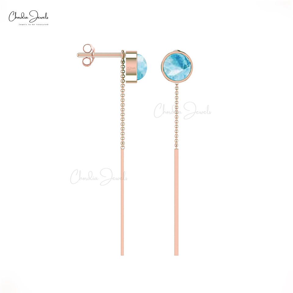 Boucles d'oreilles solitaire en or 14 carats ensemble de lunette de chaîne de goutte boucle d'oreille aigue-marine naturelle boucle d'oreille pour les femmes bijoux fins personnalisés