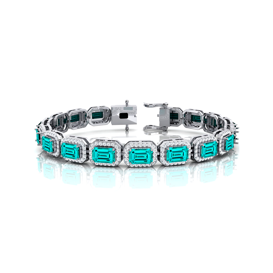 Or pur 14 carats 2.2mm pierre précieuse de tourmaline Paraiba cultivée en laboratoire avec bracelets de tennis en diamant Bracelet en diamant unisexe classique fait à la main
