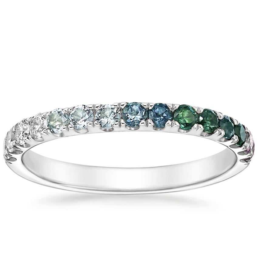 Bague en or massif 14 carats avec diamants naturels, saphirs, topazes, alexandrites et aigue-marines, sertie de pierres précieuses classiques à griffes partagées