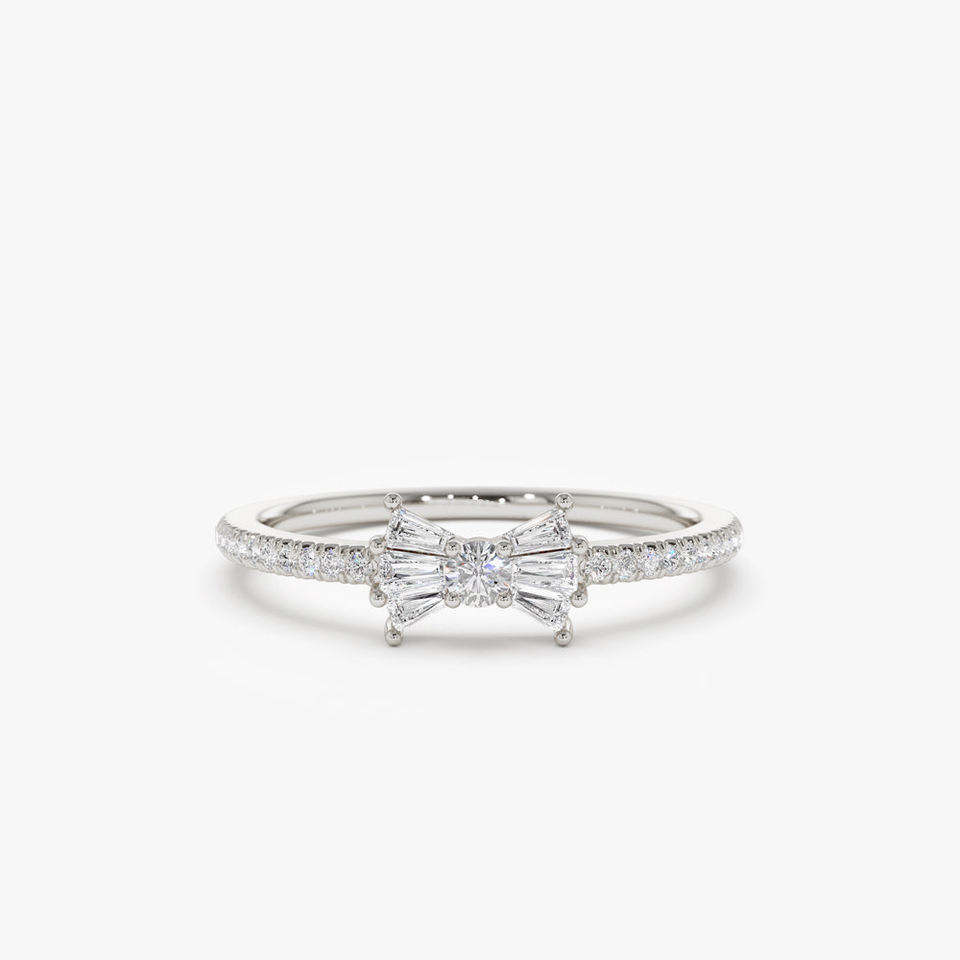 Bague Nœud Baguette en Or Rose Massif 14 carats avec Diamant Naturel 0,28 CT Certifié, Plaqué Rhodium, Bijou Fin Tendance pour Usage Quotidien, ODM