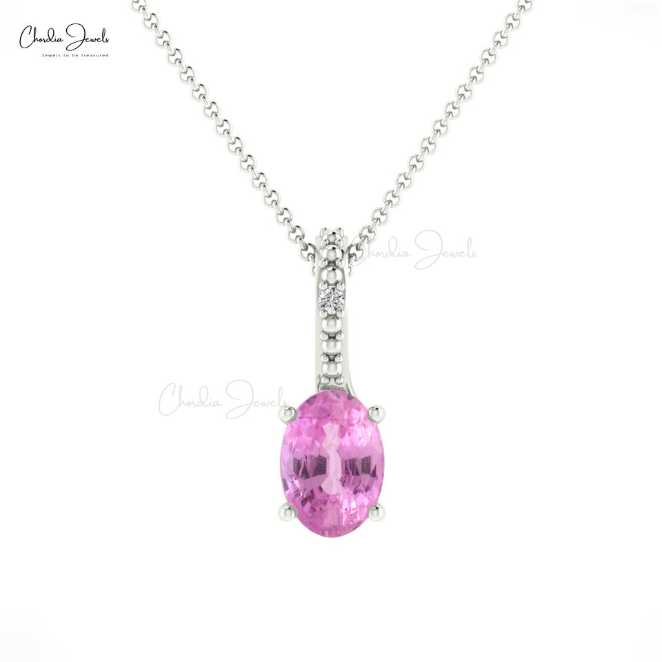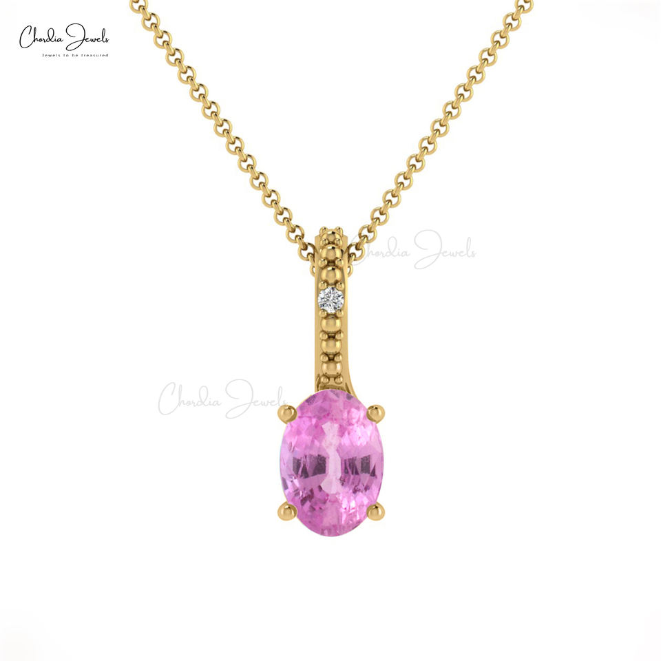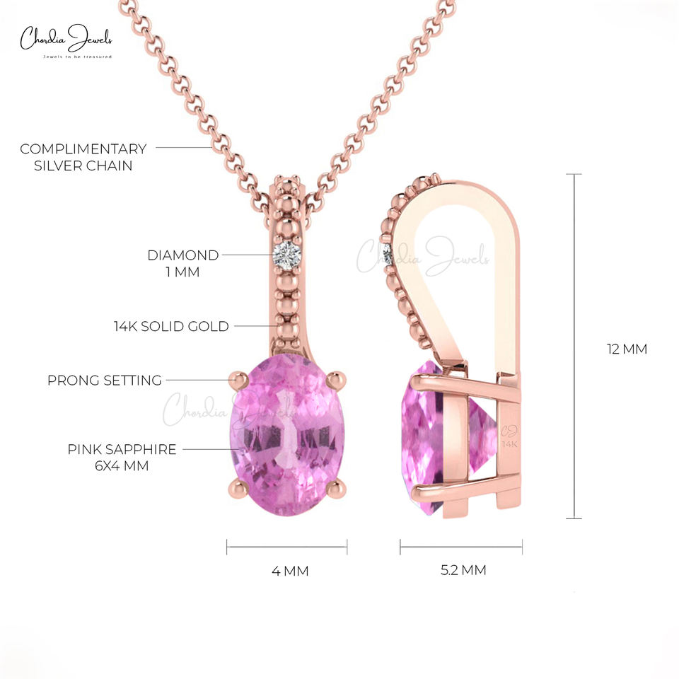 Pendentif en or massif 14 carats avec diamant caché avec saphir rose 6x4mm Livraison gratuite Cadeau d'anniversaire de style ethnique du grossiste