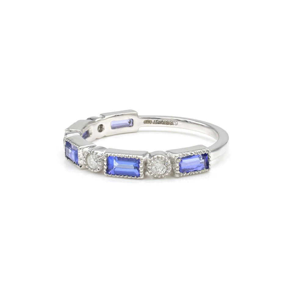 Bague empilable en or massif 14 carats avec diamants et tanzanite taille baguette 4x2mm, demi-alliance éternité, cadeau de mariage pour elle, fournisseur de bijoux fins