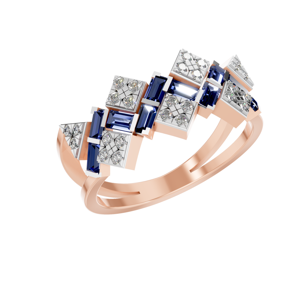 Bague de fiançailles en or massif 14k Design unique diamants cultivés en laboratoire et saphir synthétique bijoux fins pour cadeau de fête Fine ODM OEM