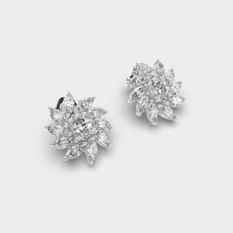 Boucles d'oreilles en or massif 14 carats, style floral, halo de diamants, 2,82 carats, diamant ovale taille marquise, cultivé en laboratoire, boucles d'oreilles à clous, bijoux de mariage, cadeau