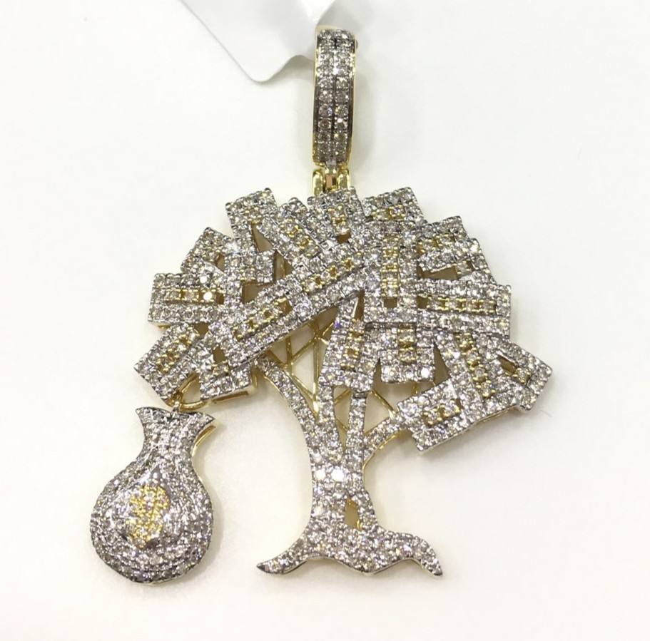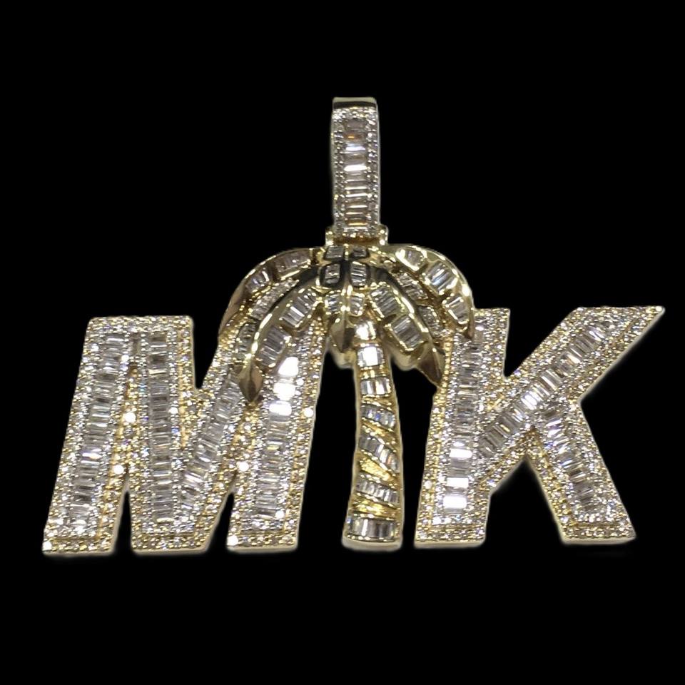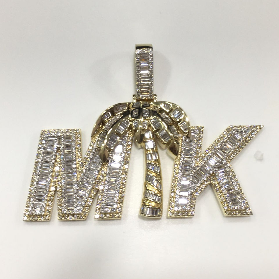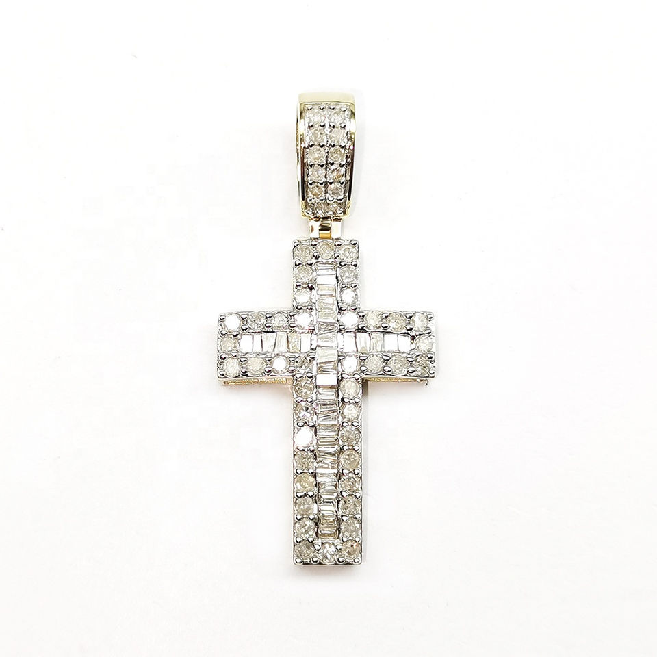 Pendentif de fête pour homme en or massif 14 carats, style hip-hop, design unique, diamant CVD taille baguette, certifié IGI