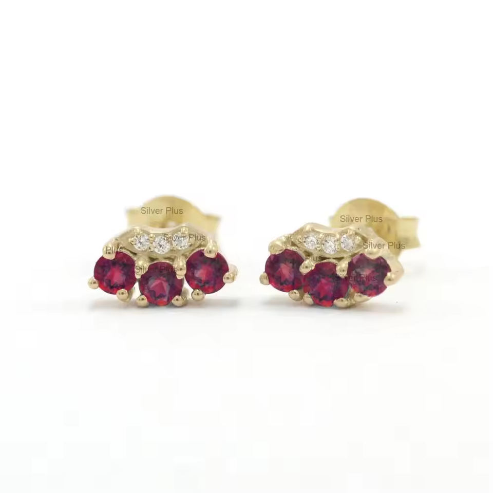 Boucles d'oreilles en or massif 14 carats avec diamants et pierres précieuses Bijoux minimalistes