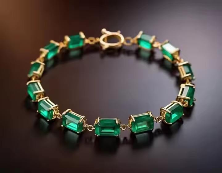 14k Solitaire Emerald Cut Moissanite Bracelet for Women Unique Classic Prong Set Bracelet Halo Design Classic Unique Bangles