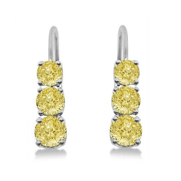 Boucles d'oreilles à levier en or blanc 14 carats avec trois pierres et diamant jaune de 1,00 carat, bijoux élégants en diamant