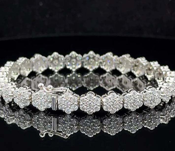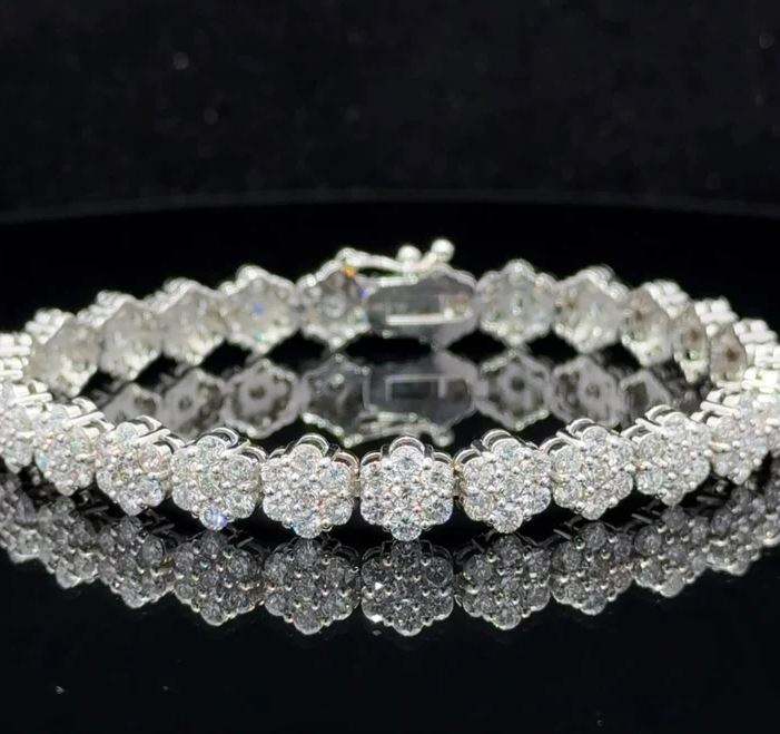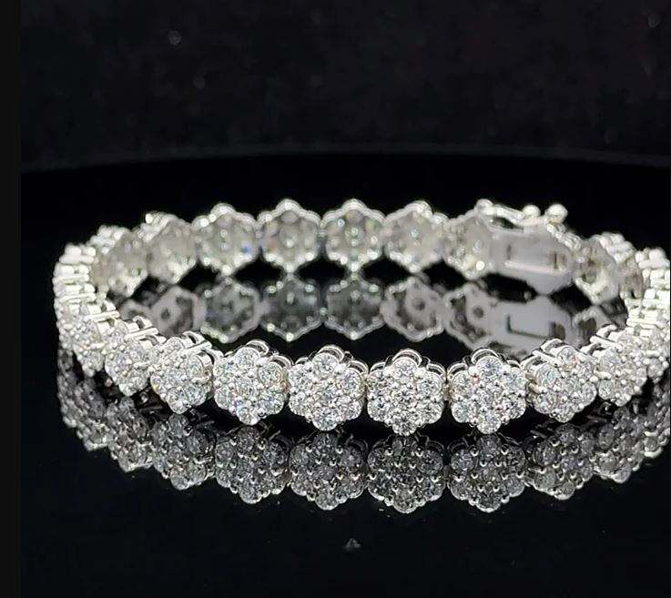 14k White Gold and Moissanite Sterling Silver 30Gm Luxury Charm Bracelet