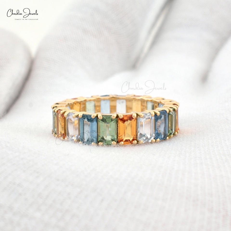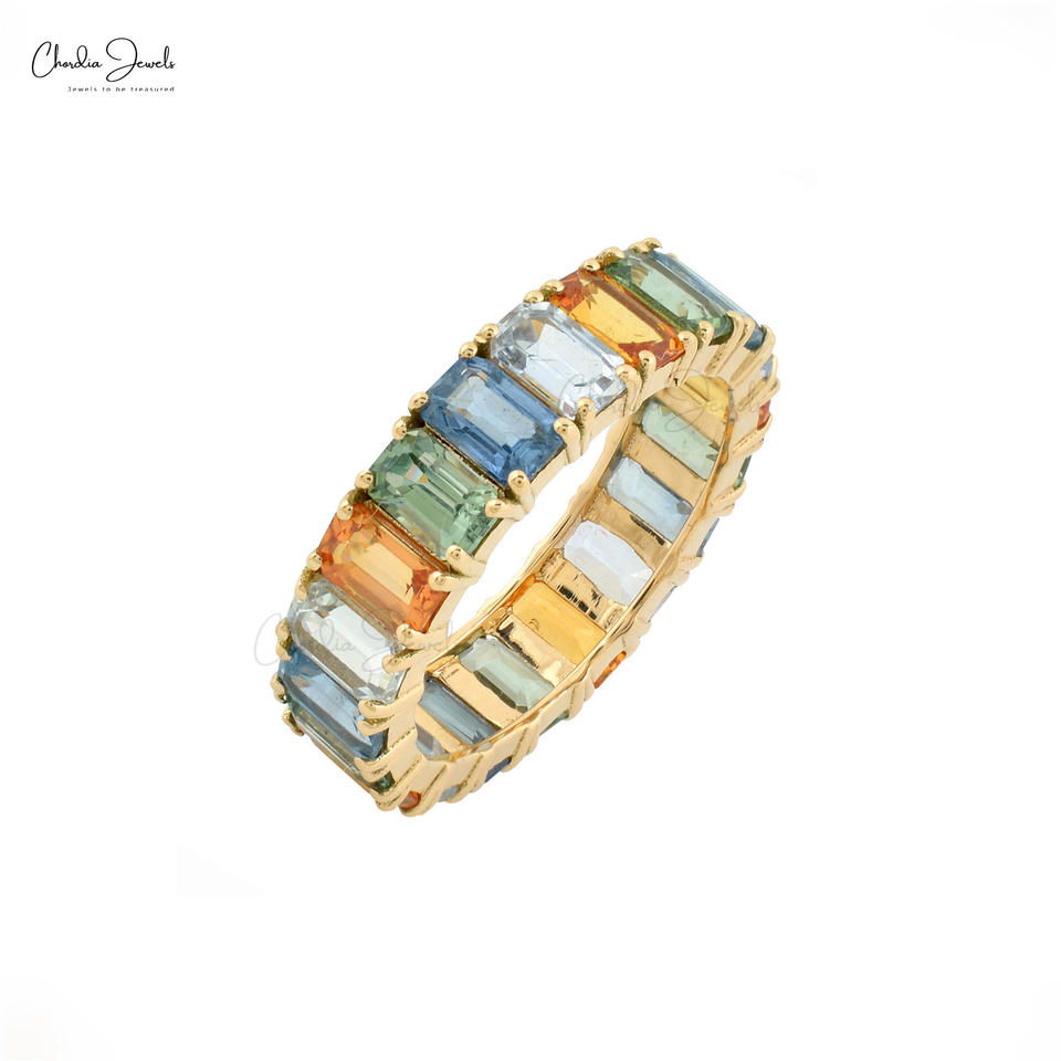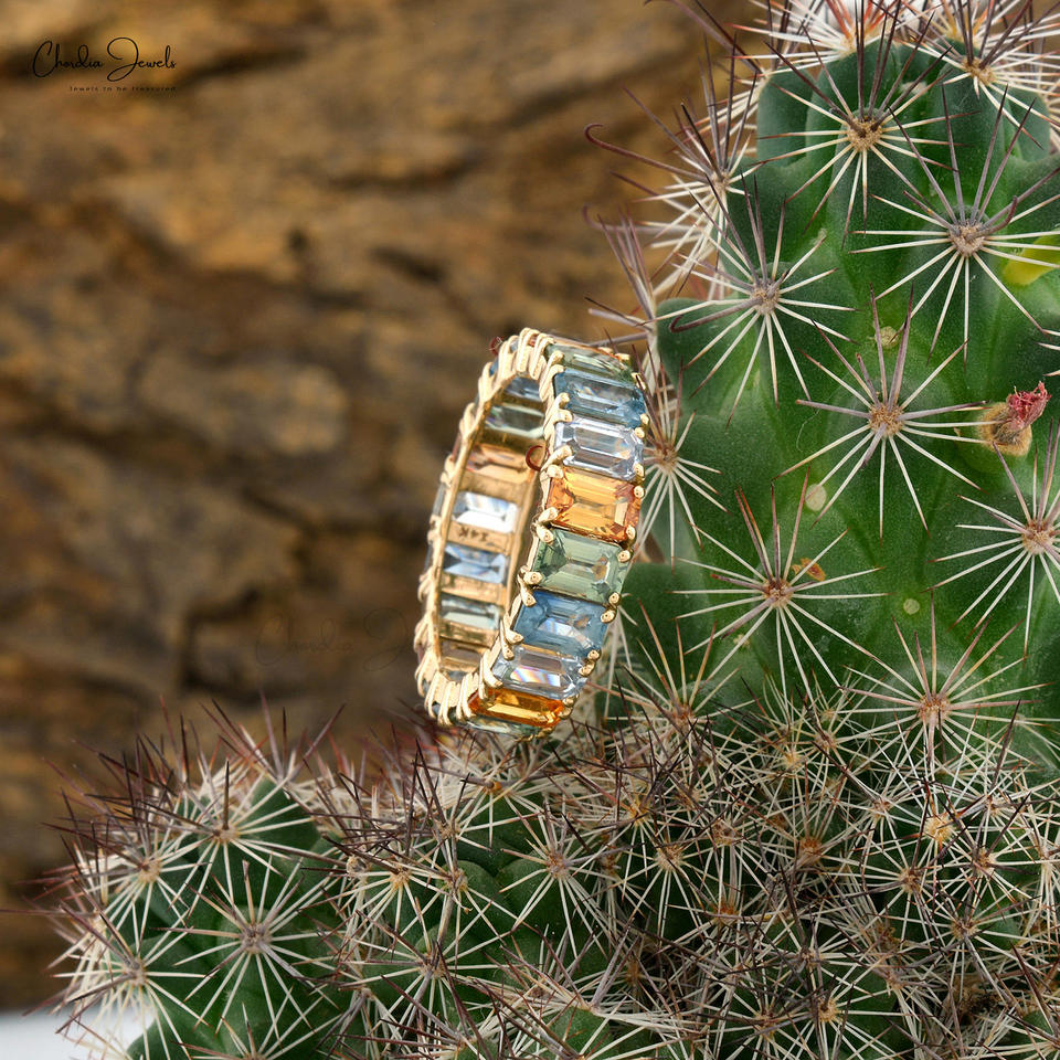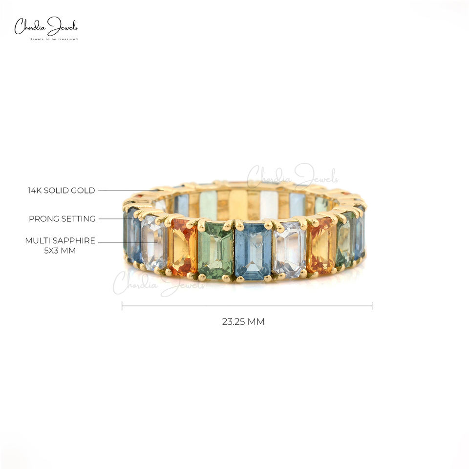 Bague d'éternité multi saphir naturel en or jaune 14 carats 5x3mm octogone taillé en pierre précieuse mariage bande d'éternité bijoux fins grossiste