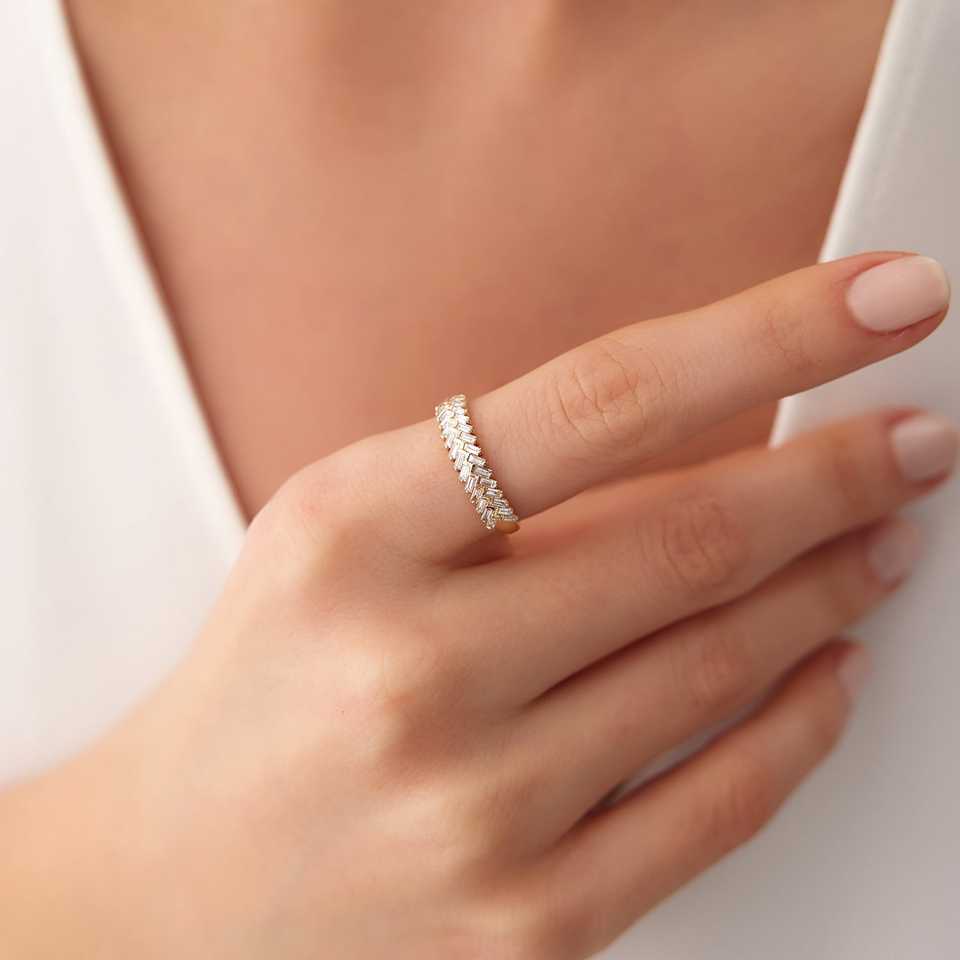 14k jaune or massif 14k étape Baguette bague en diamant pour les femmes Champagne or Direct usine prix Geum bijoux cadeau pour la mère