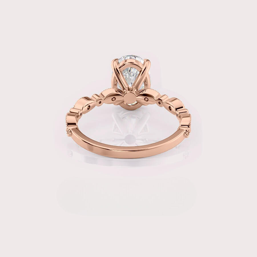 Bague en or rose 14 carats avec diamant de laboratoire taille ovale et pierres latérales rondes, plaquée rhodium, design moderne de luxe certifié IGI pour mariée