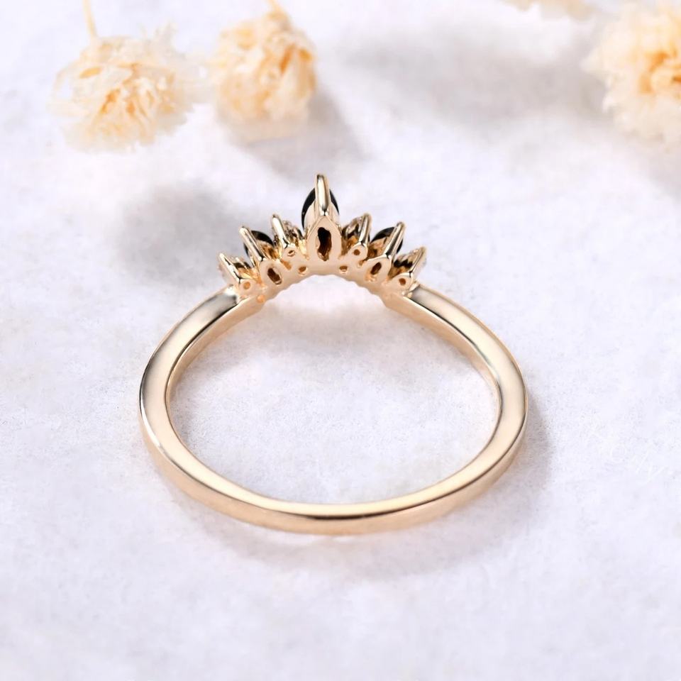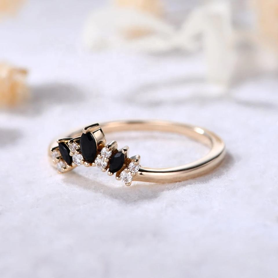 Bague de mariage en diamant naturel incurvé en or massif 14 carats avec bague de mariage en pierre précieuse d'onyx noir pour femme