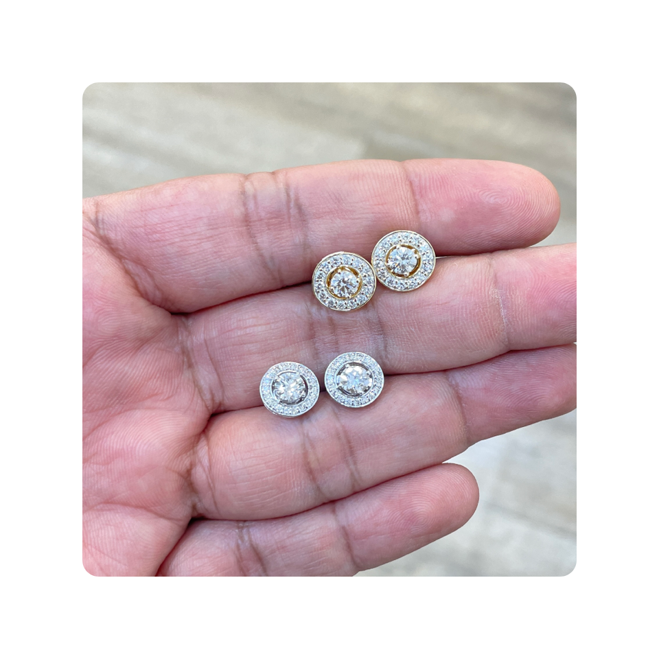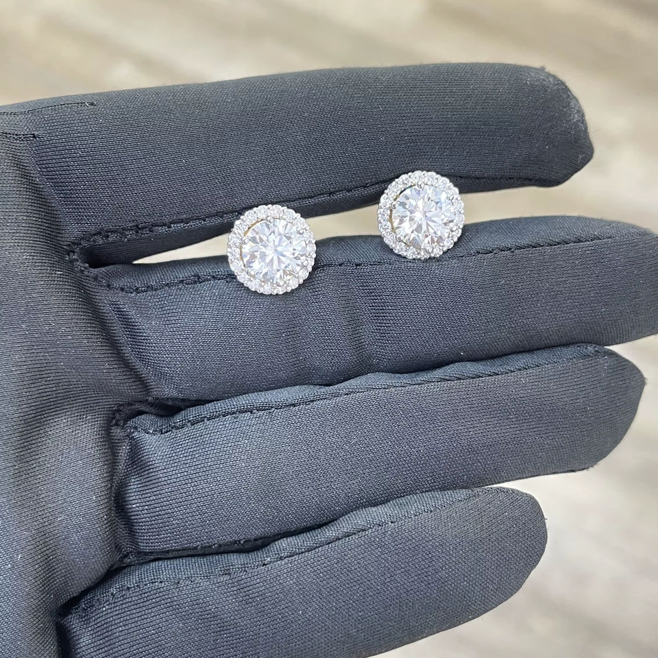Nom du produit:Boucles d'oreilles halo pour femmes, 3CT rondes chacune, avec diamants de laboratoire sur les côtés